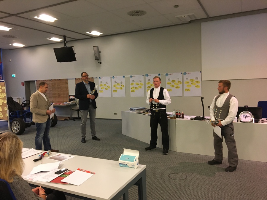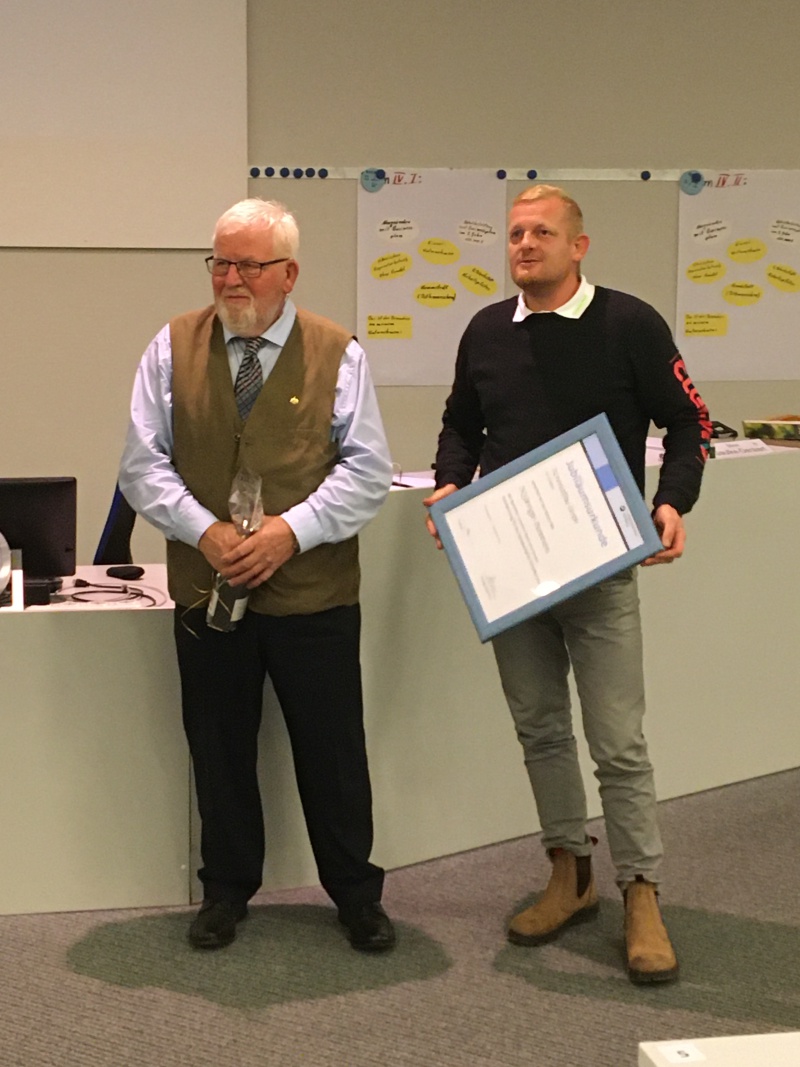 Auf der Innungsversammlung der Bau-Innung wurden geehrt: Johann Speck (Innungsbester Zimmerer und 4. Landessieger) sowie Vasilij Lysenko (Innungsbester Maurer)
